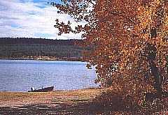 Puntzi Lake is a plateau lake surrounded by low rolling mountains.