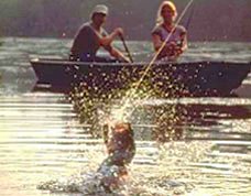 26 mile long lake has excellent trout fishing, water sports, boating,